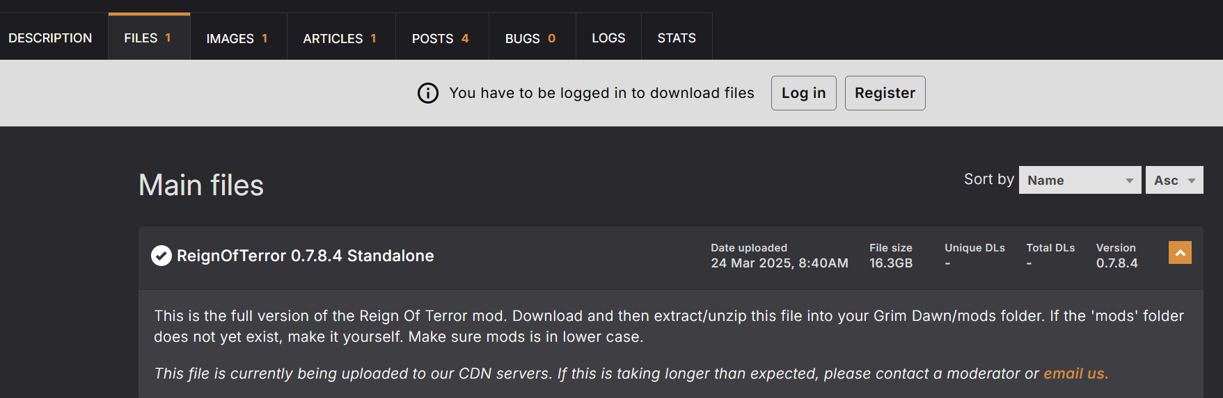 Edit2: Nexus has automatically quarantined the file, so it needs some manual approval by the staff first. No idea how long that takes.