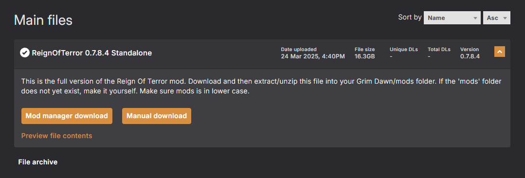 Edit: Reign of Terror at Grim Dawn Nexus - Mods and Community Nexus mods link now available. This update is the 0.7.8.4 Standalone so you can ignore any of the smaller updates posted above (0.7.8.3 and 0.7.8.4)