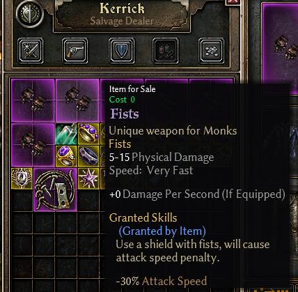 Now you can only buy FISTS from Kerrick (the 1st merchant of DC)