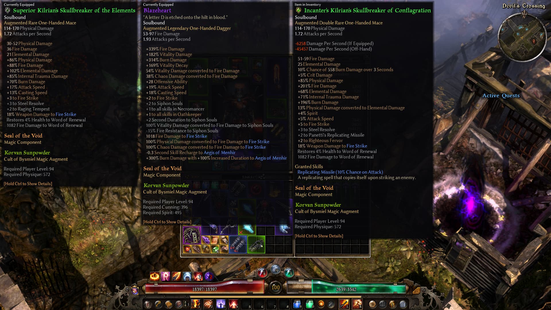 Recently I’ve been working on finishing the Fire Strike build that I found on the forum and was farming for a better Kilrian’s mace. I found one which is a dobule rare, with tons of stats better but it still gives me a comparison of -6k dps. Attack speed is a little bit down and there is no casting speed, also some physical to elemental conversion percent - could that be the factor? On the character window the damage numbers actually show higher. Attaching screenshots for reference. Also attaching current snapshot of the demolitionist tree with the +3 mace. Any help / explanation will be appreciated.