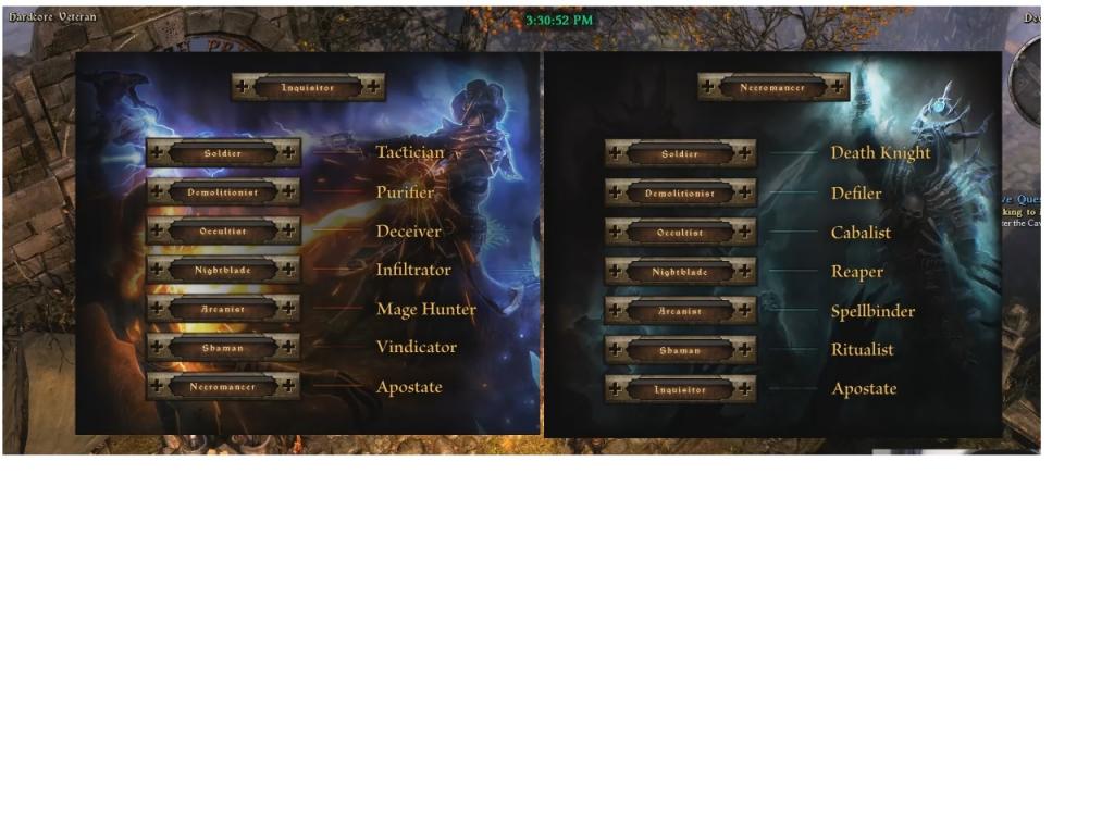 *Ritualist has changed and is no longer an inquisitor combination - it was to be the combination of necromancer and inquisitor, which has now been named apostate.