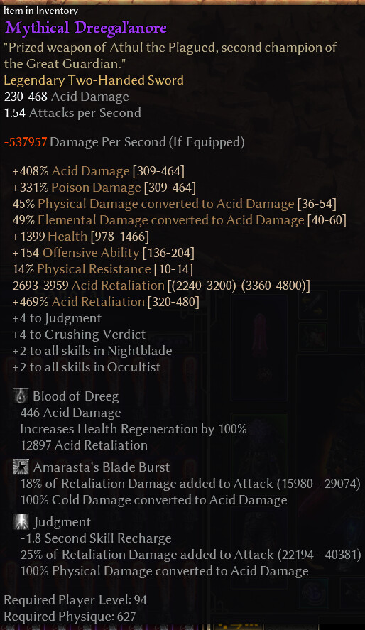 This is a very low solo RtA output for an acid build. It will fight acid resistant casters (and there’s a lot of them) for a long time. Stacks or not, this is just very lackluster.