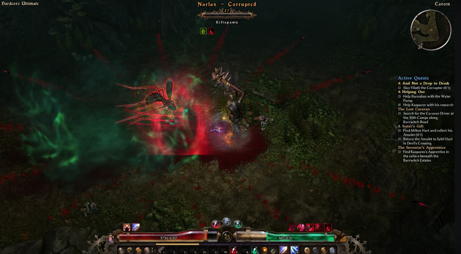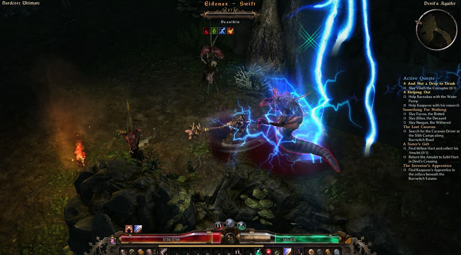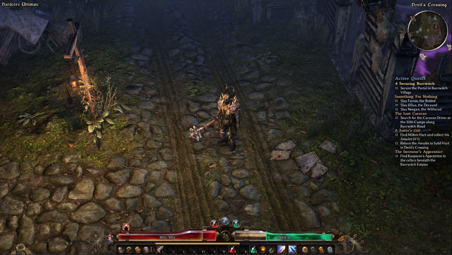 Yes, actually, because Im not used to having any class skills to utilize! Haha. Im striking a balance between survivability and damage, my main goal is to secure resistances before i drop a deep investment into my offense. So far thats paying off pretty well. I just killed Viloth, and am pretty much just doing farming runs to try to roll some better gear. Currently my gear is all Poison/Acid res mainly because I was just now going after Viloth. I also keep getting 1 handed drops, which is not the route im going. Every Epic drop has been something my build cant use, so Im just farming a bit now before heading to the flooded passage.