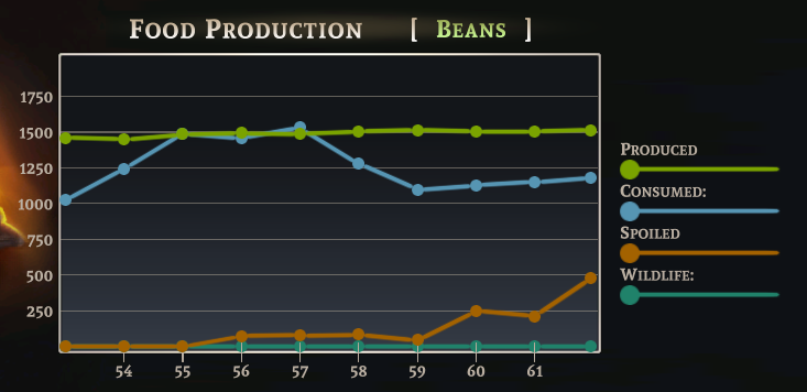 In this example I enabled the policy at the start of year 56, and disabled at the start of 60. Graph looks the same for greens, hay, grain, etc. No crop yields were affected.