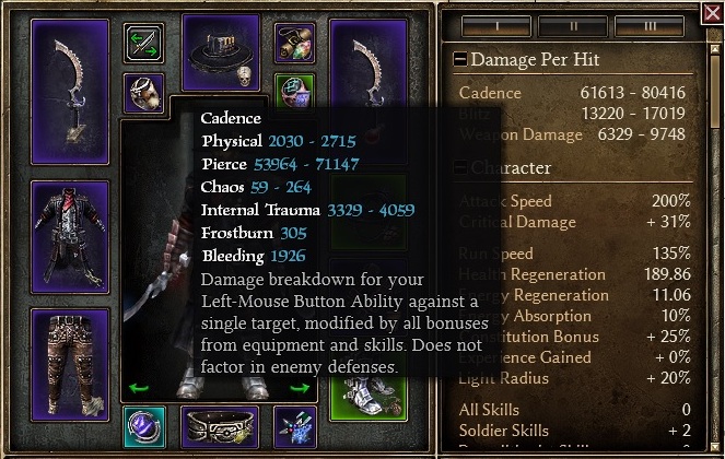 Idea of the build was to stack as much pierce dmg possible, and Valduns set gives fair amount of flat pierce even if you aren’t using 2h ranged weapon. Also goal is to convert as much physical dmg to pierce, I know its easy when using derma slicer or claw combined with blades of nadaan but I`m using two reavers claws. Here Valduns helps a lot with its 30% increase in armor piercing in addition to blessed whetstones 50% and blades of nadaans 100% u get around 92% conversion to armor piercing. You can get even 100% by using blessed whetstone on both weapons but I needed other slot for Olerons blood because I got short on skill points to learn war cry. Shortage of skill points made me use reavers claws over derma weapons for +1 to soldier skills.