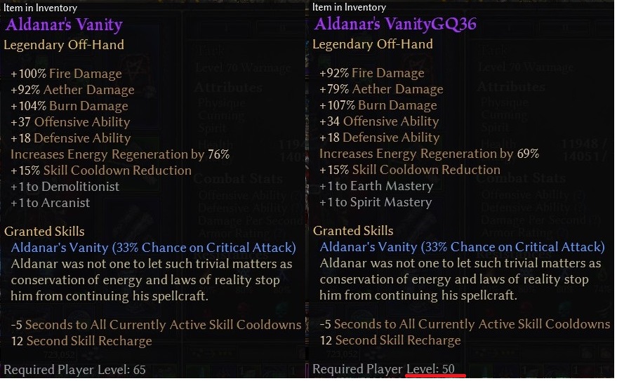 I did not however, adjust ZE and GQ legendaries from 50 to 65, at least not for this version.