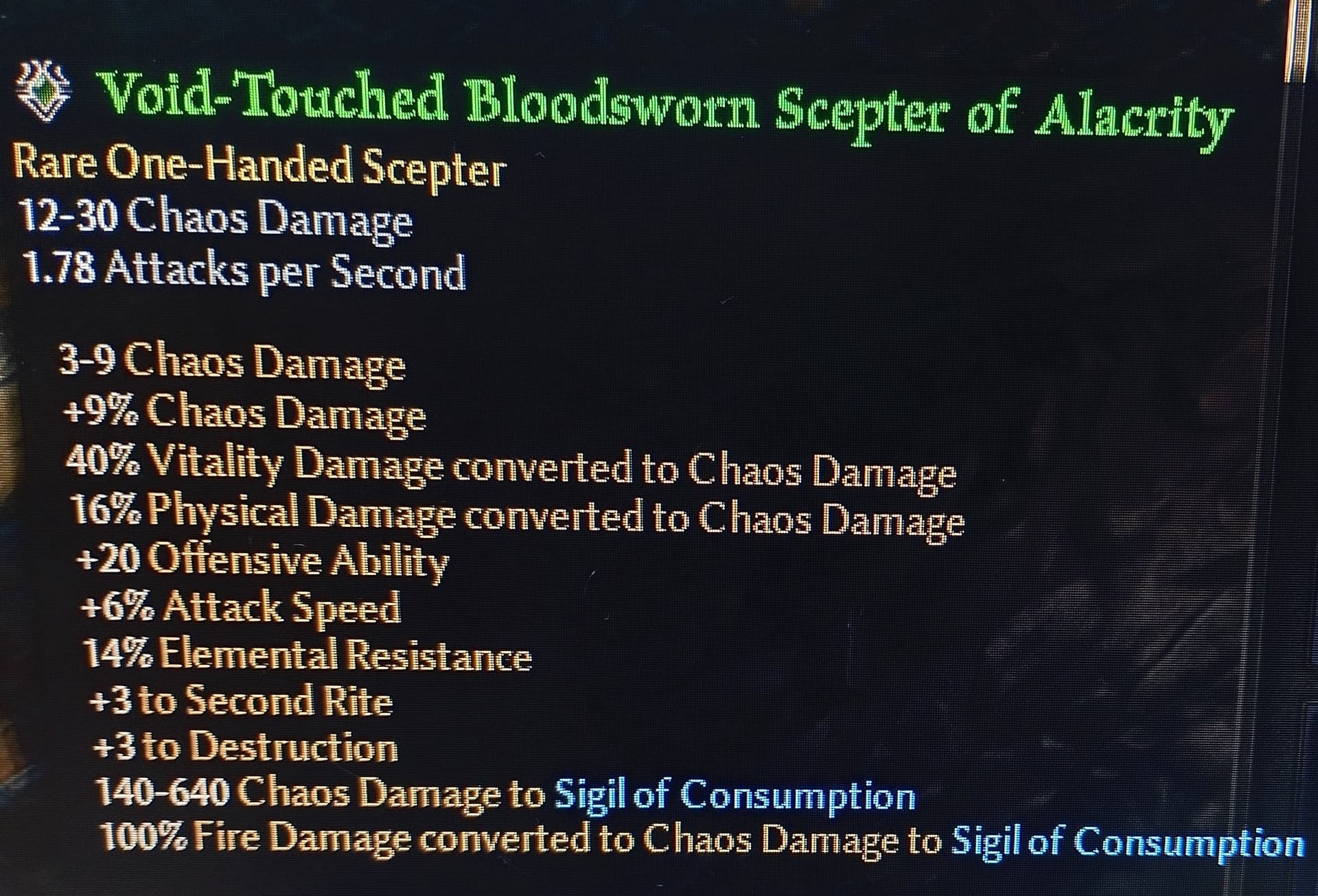 As you can see in the photos, the bonus for item “Bloodsworn Scepter” is not showing.