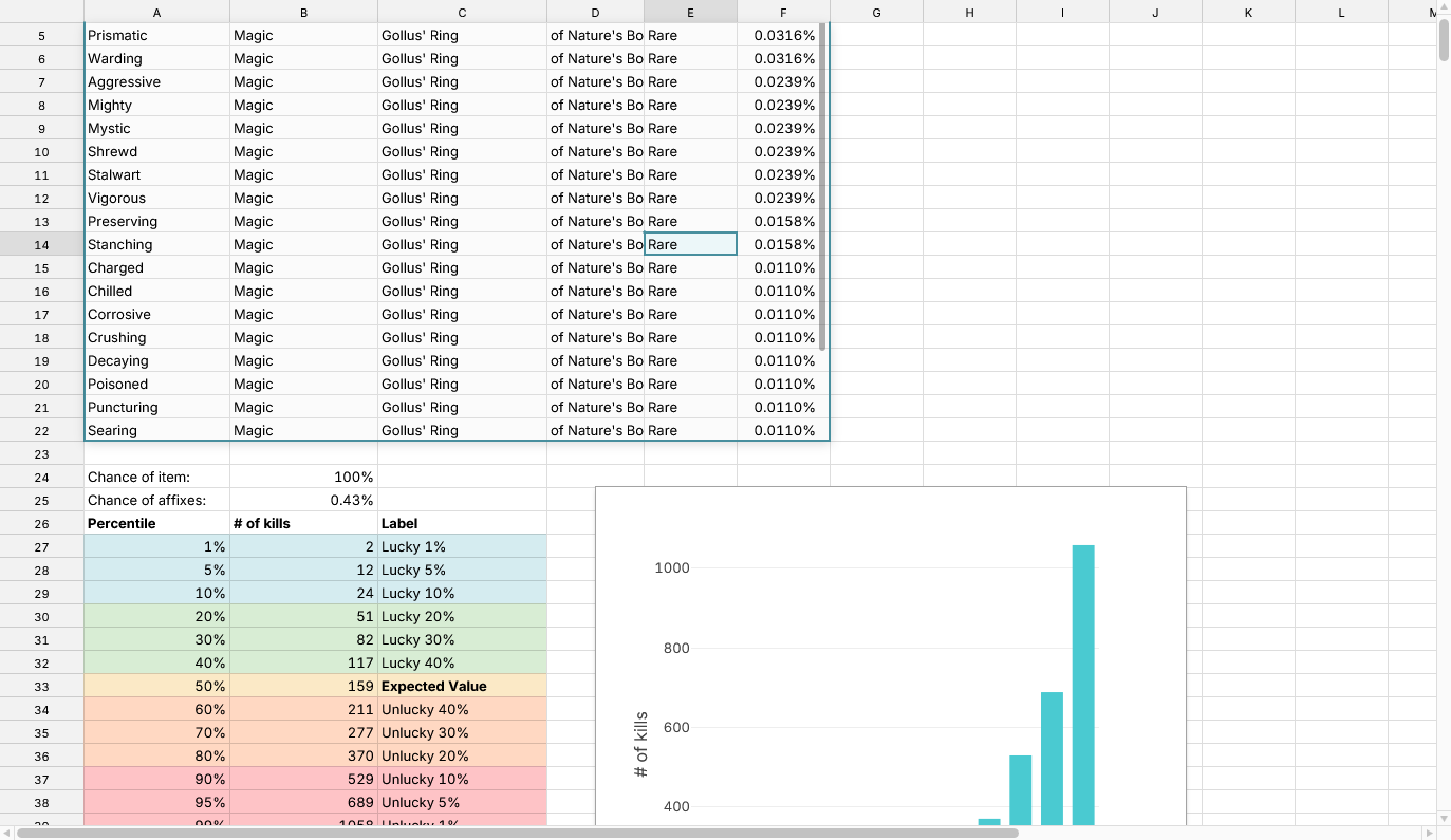 screenshot your table and affix settings? - like i said, it makes sense if it’s set to rare-rare or if you’re including multiple affixes and not solely Nature’s bounty in the specific pivot