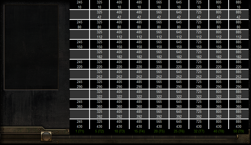 The Transmuters (grey rows) made it a little messy, but should still make finding the right position easier. Maybe Ill make one without the transmuters and another with only transmuters later.
