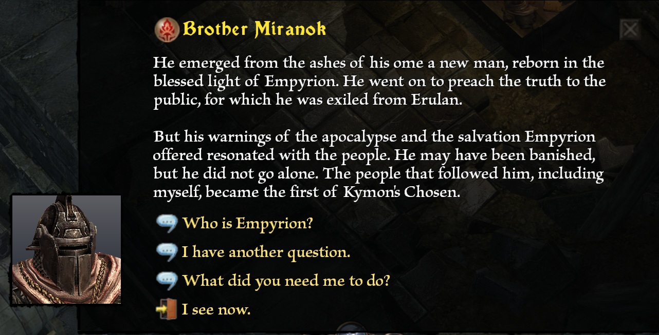 When talking about Kymon’s backstory, the first line of this text reads “ashes of his ome”.