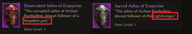 Ops, about Korvaak i was wrong, we fight Archon Barthollem in the tomb, he drops the Desecrated Ashes of Empyrion…