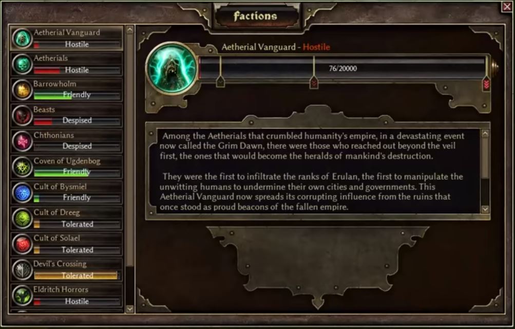 Grim Dawn`s lore is sketchy on the surface but if you pay attention, look around, read all the notes and exhaust all character dialog options you see that is totally the opposite.
