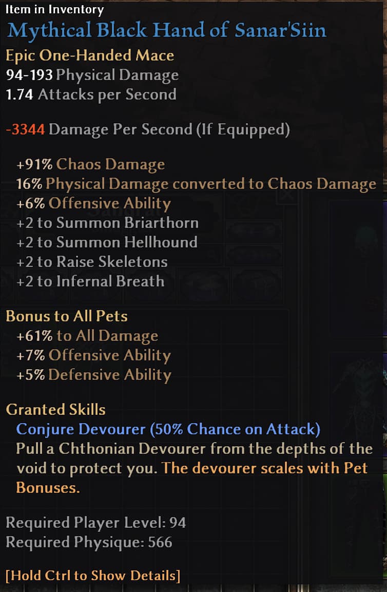 Having another go at this. Question though: why dual wield Salazar’s? So you can call out 2 Harbingers? Do you have both out at the same time or alternate between them? If not calling out 2 then wouldn’t something else in the offhand be better?