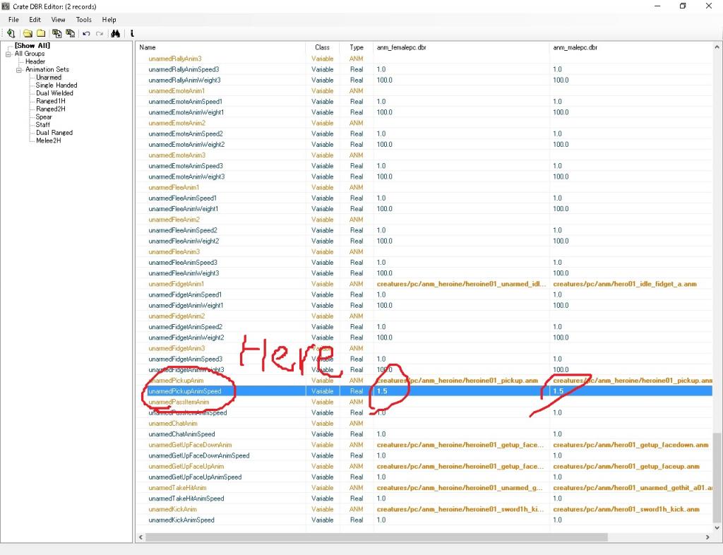 and now open the that 2files by DBR editor to find the [PickupAnim].