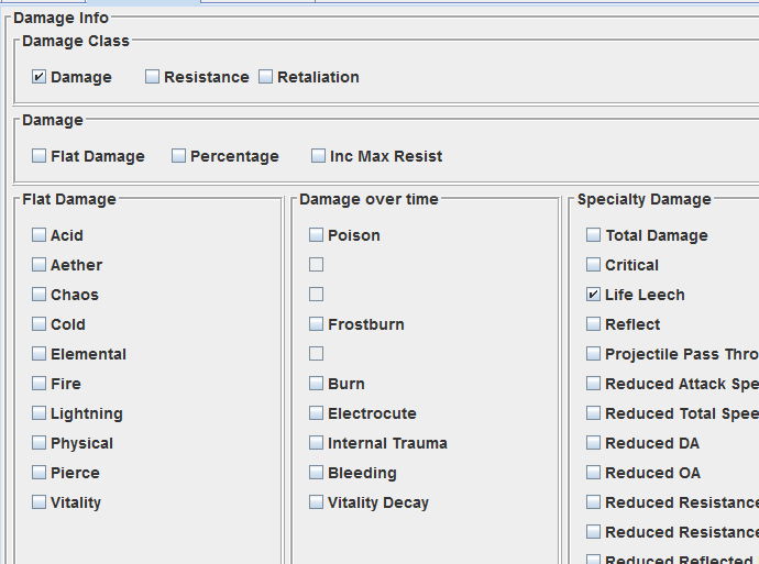 Hi, how can i find my items with % damage converted to health, in stash transfer.