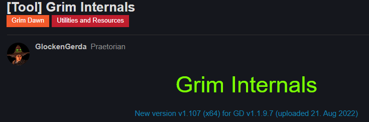 Grim Internals (x64) v1.85 Download-Link (MEGA) updated for GD v1.1.5.1 fixed some localization tag errors total pet damage wasn’t shown in the InfoBox; fixed. added 2 entries to the .ini file that redefines the F1 & F5 key code (used for Show/Hide InfoxBox and for opening the Configurator) [Configurator] VK_F1 = 112 VK_F5 = 116 The key codes are the same as described here Don’t use the hexadecimal values; instead convert them to decimal values (eg: 0x70 = 112 for the F1 key) S…