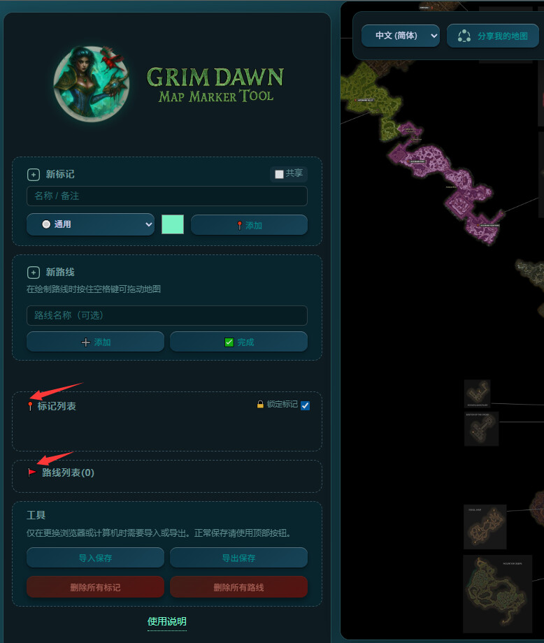 I’d like to share a little interactive map tool I made for Grim Dawn.