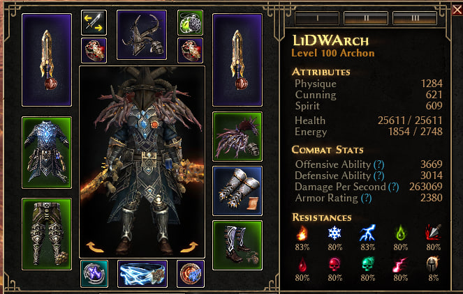 Latest patch introduced brand new playstyle - spam sigils, which proven to be extremely potent on the right platform, and such one of the leechiest builds in the history of Grim Dawn - Dark One - is reborn just in time for this top20. Can facetank the world but only once you deploy all your leeching/healing magic. At the start of the patch it felt like a top1 build by such a large margin that we even reported it and didn’t want to include in the ranking at first, but the progress of the testing had another say in that. Superb damage and tank ceiling of vitality sigil spam are offset by low QoL and very high setup/ramp-up time. You can increase QoL by playing as a Sentinel but you trade some damage for it.