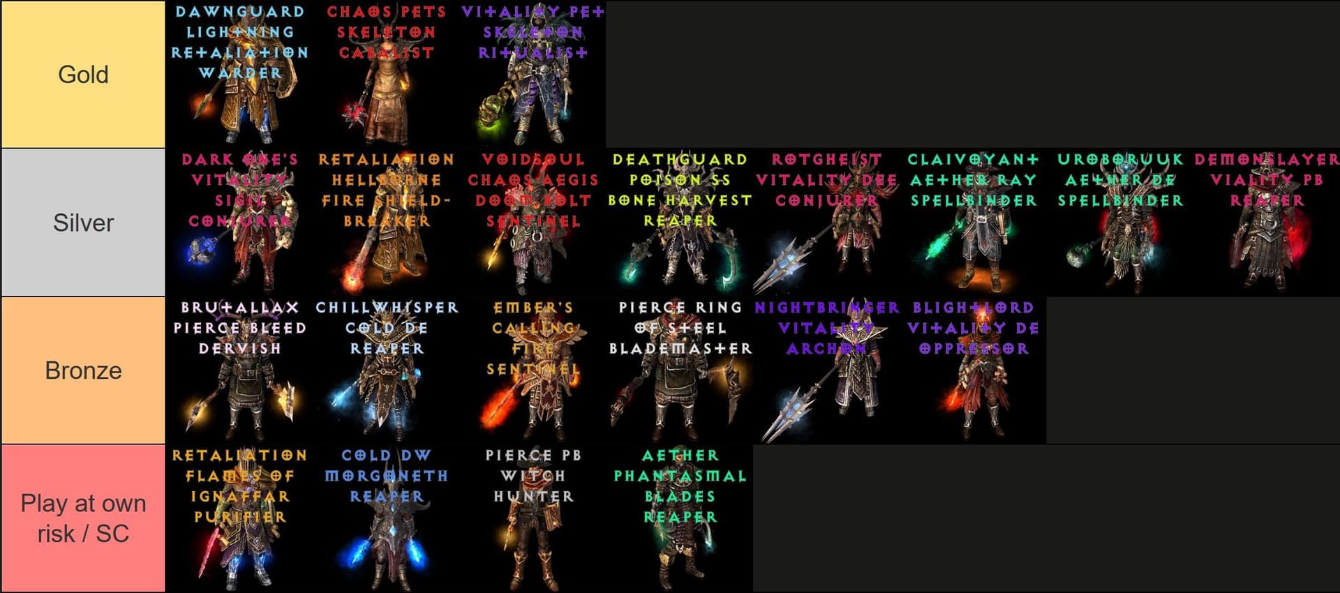 We tried to do the above, but this time we collectively came to the conclusion that the scoring system we’ve been using is hot garbage that has little to do with reality, so we practically abandoned it. We will return to it in the next issue, but it’s gonna get heavily revamped and hopefully we’ll get new way of testing and benchmarking builds in endgame, as SR is just incredibly volatile and CR is irrelevant.