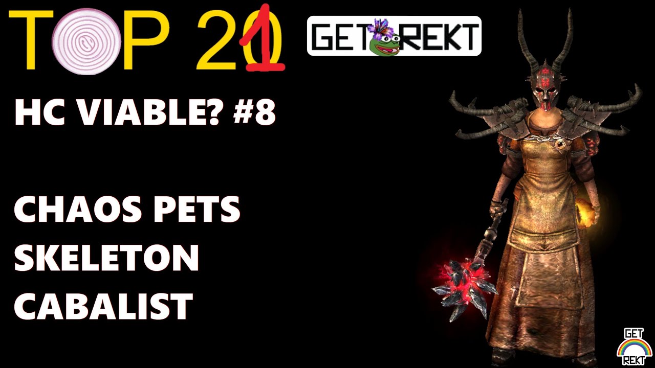 At long last a pet build makes our top20 list! Skeletons provide good clear speed without lacking the AoE damage other pets might. Chaos RR being added to Curse of Frailty help push this Cabalist to the top of the food chain for summoners.