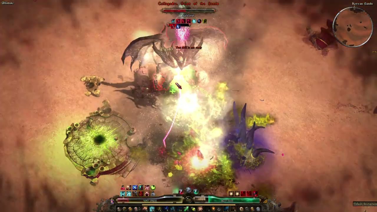 Being advertised as a vit decay build somewhere, the case is a bit more complicated. The build was born on a coincidence of many things. Firstly, I was playing with some old concept of mine, namely Abomination and Ch’ton offhand on a vit build (my affidavit is that it had a certain allure in it for me since adding vit % damage to Abom). Secondly, I was brimful of enthusiasm to make Dark One great again. And the last but not the least, the fact that vit damage got some new toys to play with, such as cheap RR component, buffed bottom left devotion path and so on.