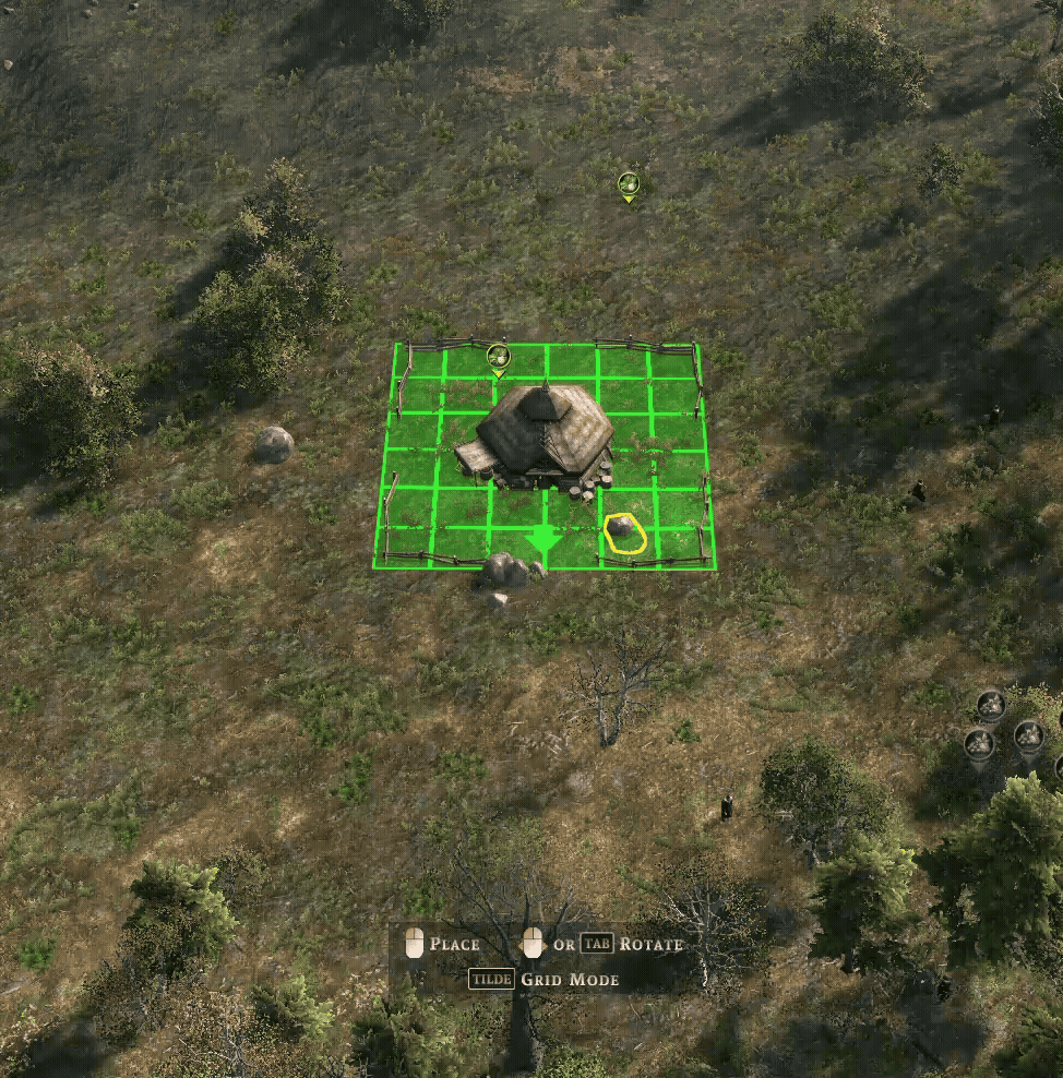 What we came back with is not some compromise snappable angles. With v1.1, you will have full 360 placement of buildings. To add to that, we introduced significant leeway in how you can overlap building footprints, so that you can close any unfortunate gaps with decorations and create settlements to your exact liking.