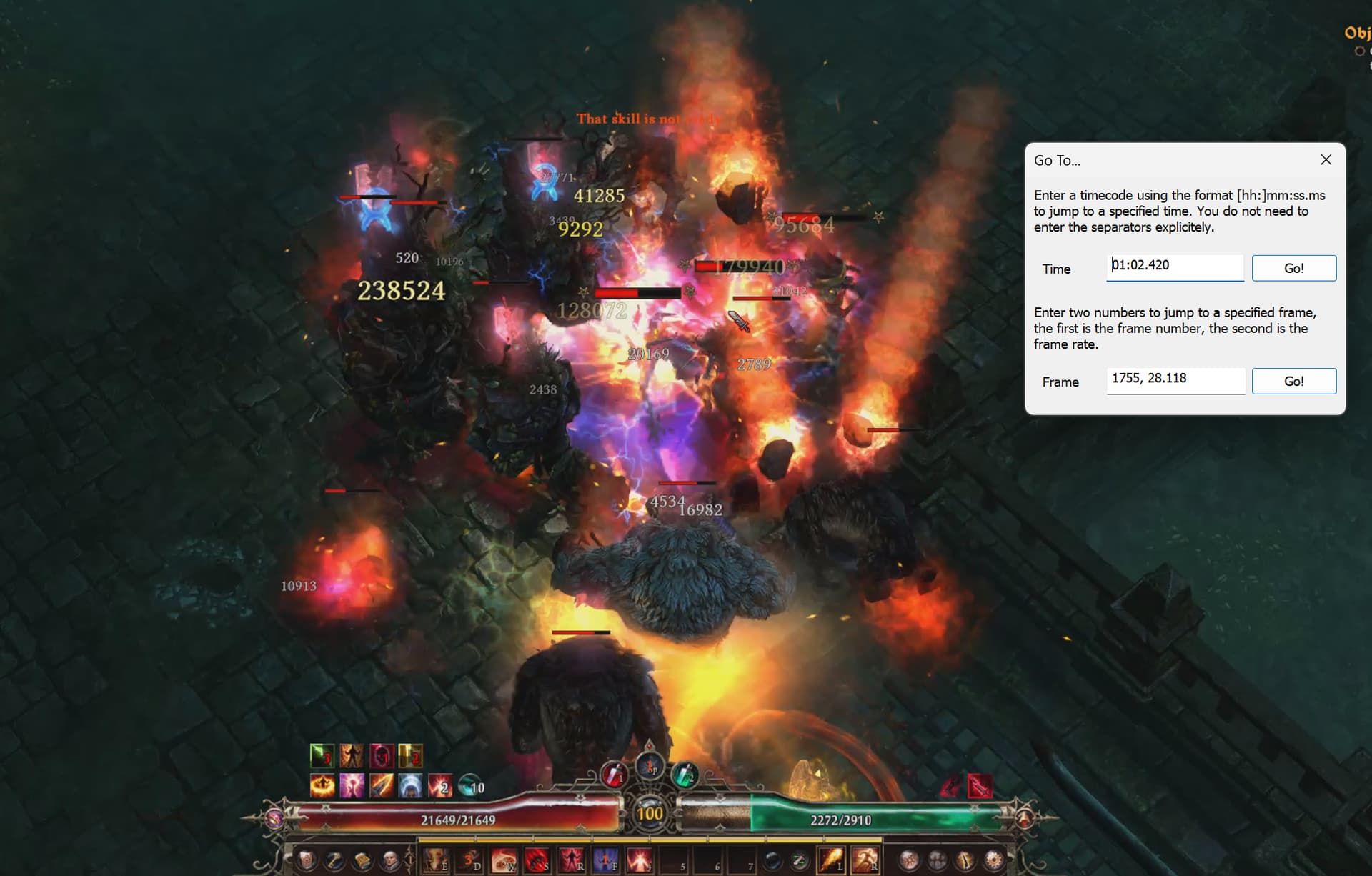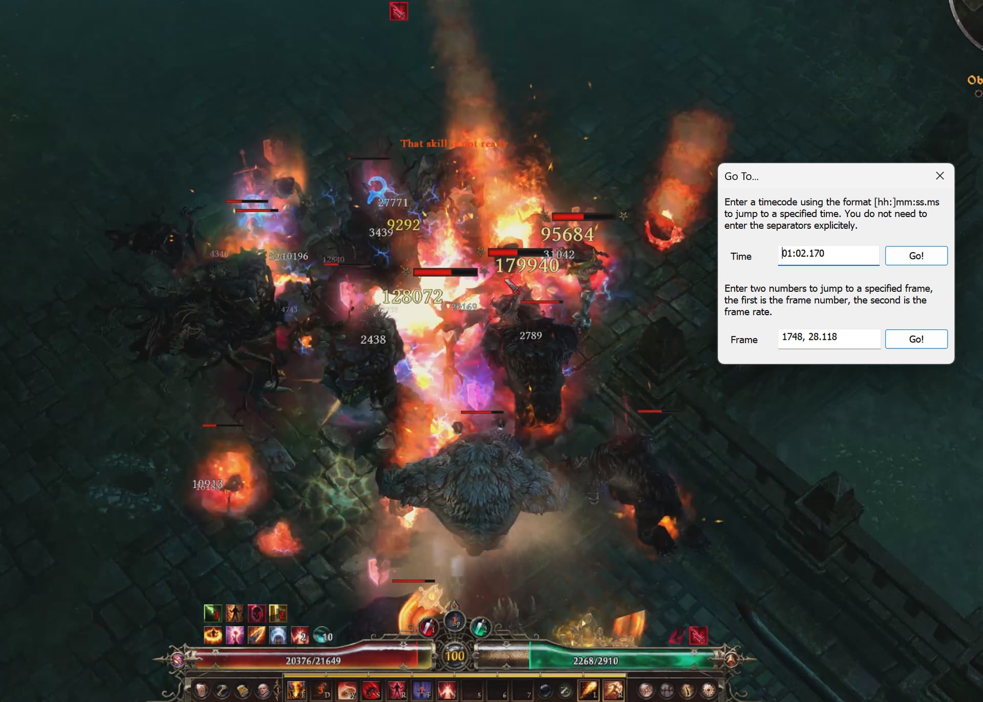Like at 1:06 the cursor is on the pack, the button is pressed, but the skill doesn’t go off for a few moments. Similarly at the moment of death, it is pressed on the tooltip but didn’t go off in time.