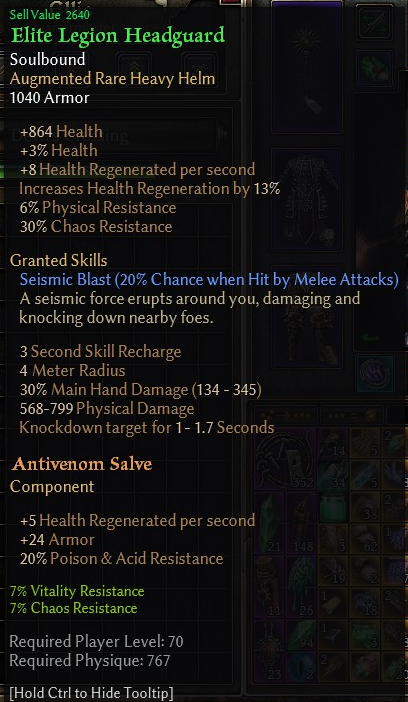 Built-in Circuit Breaker! - With Soldier’s Menhir’s Will skill (which requires a shield) you have a built in circuit breaker that heals you when your health drops (as I demonstrated in my fight vs Shar’Zul using subpar gear in the Bastion of Chaos). There are items that grant curcuit breakers like the mercy amulet or alchemist belt and guardian pauldrons. But this way you don’t have to have a dedicated circuit breaker item equipped (though you could for extra protection).
