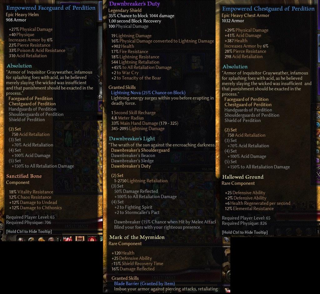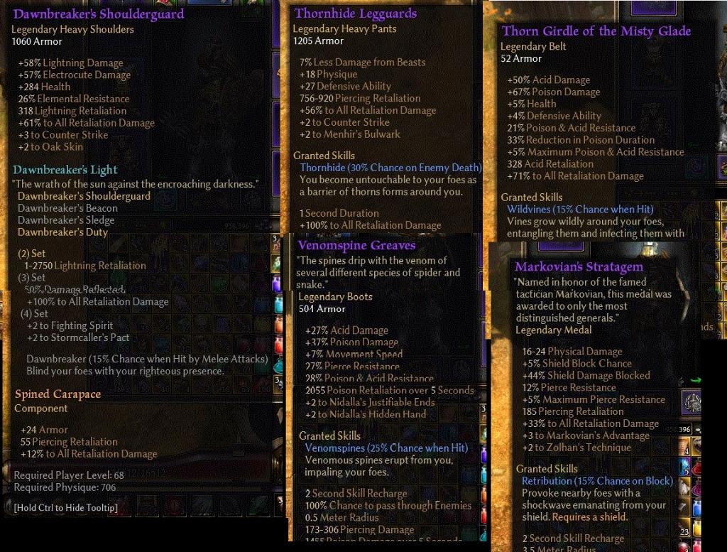 Collect Retaliation Gear AND Reflect Gear - Retaliation gear is more common and more valuable since 80% of your enemies are melee and retaliation has a much higher average damage output than reflect, but don’t neglect keeping reflect gear. Though more rare, and usually it’s a green item, reflect attributes will make dealing with ranged enemies easier at higher difficulties.