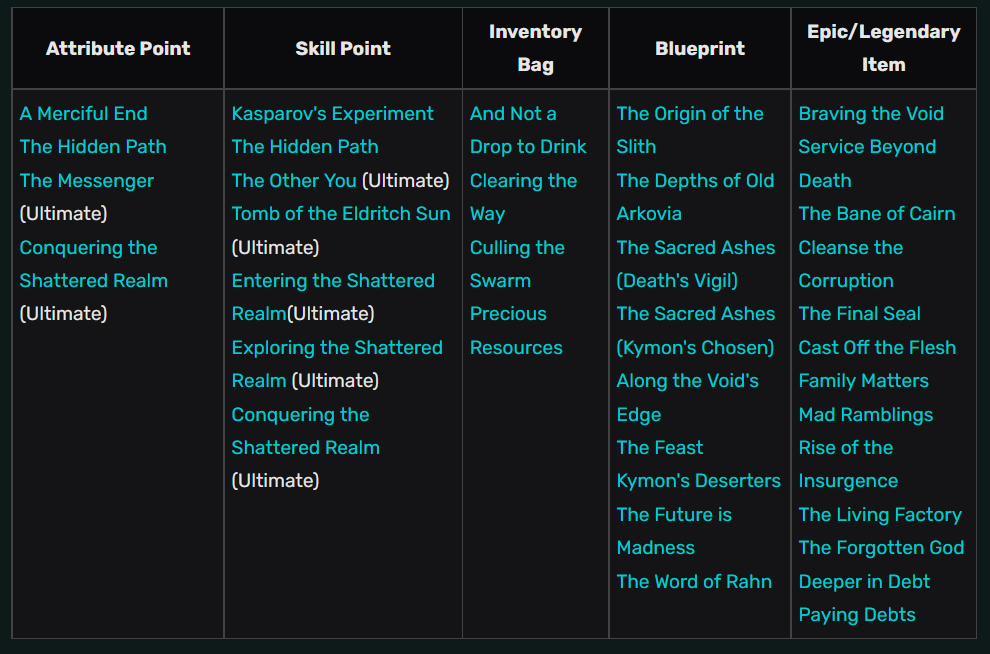 Or important quest checklist in Grim Tools which is going to be updated for sure Grim Dawn Checklist
